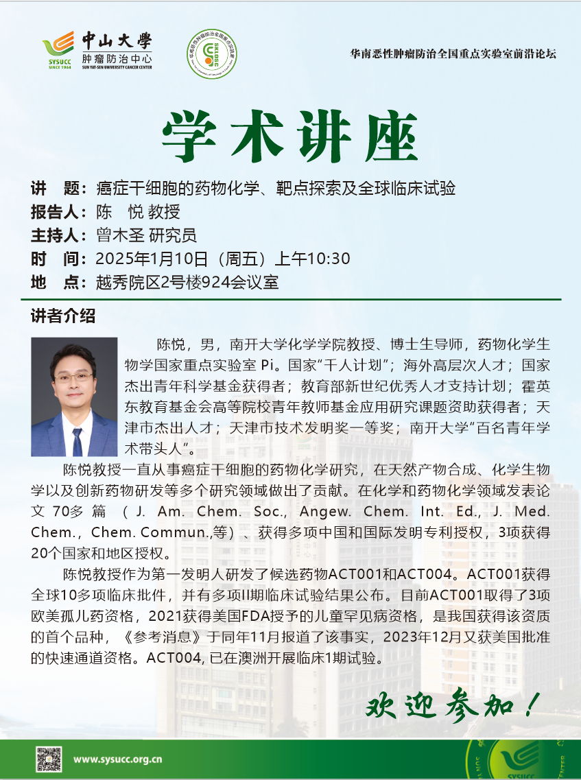 陈悦教授-癌症干细胞的药物化学、靶点探索及全球临床试验-学术讲座