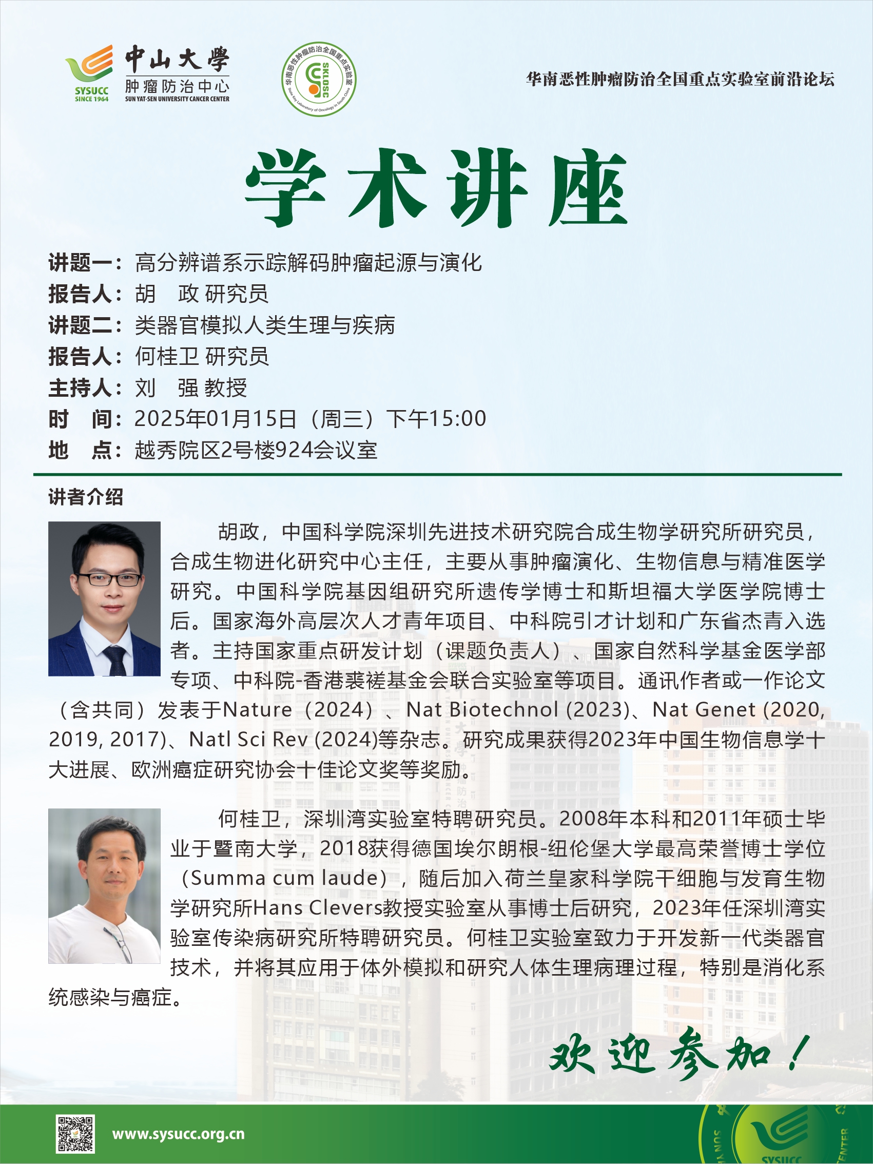 胡政研究员、何桂卫研究员-高分辨谱系示踪解码肿瘤起源与演化、类器官模拟人类生理与疾病-学术讲座