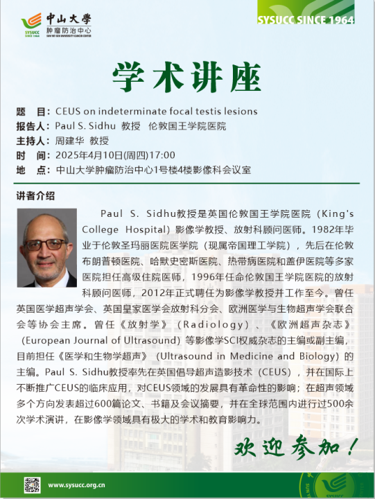 Paul S.Sidhu 教授-CEUS on indeterminate focal testis lesions-学术讲座