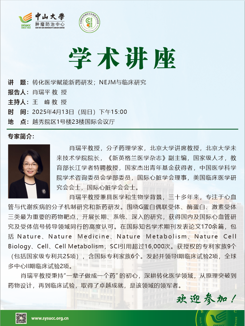 肖瑞平教授-转化医学赋能新药研发;NEJM与临床研究-学术讲座