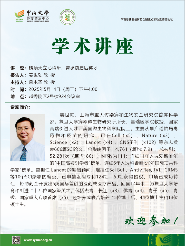 姜世勃教授-铸顶天立地科研,育承前启后英才-学术讲座