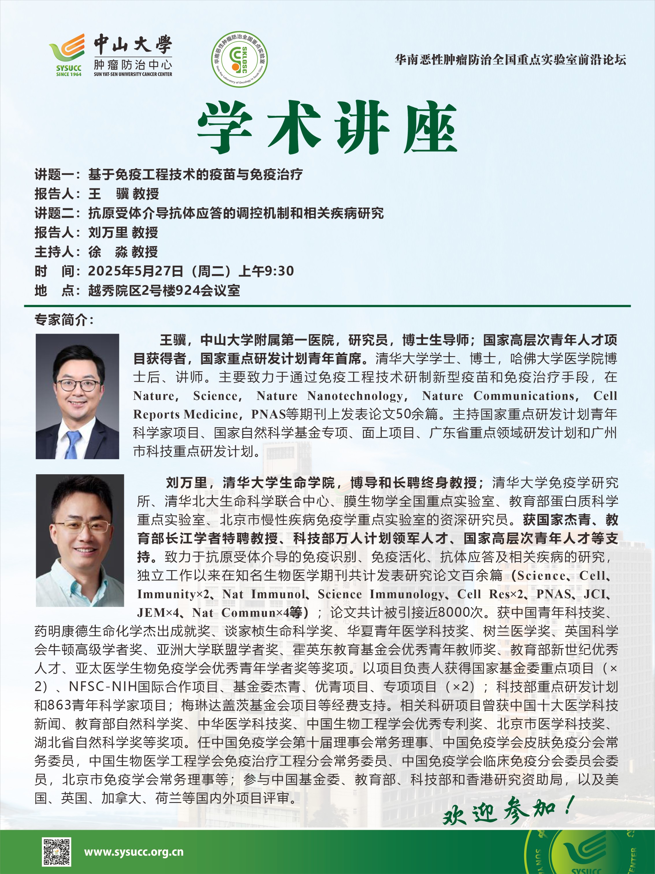 王骥教授、刘万里教授-基于免疫工程技术的疫苗与免疫治疗、抗原受体介导抗体应答的调控机制与相关疾病研究-学术讲座 -学术讲座