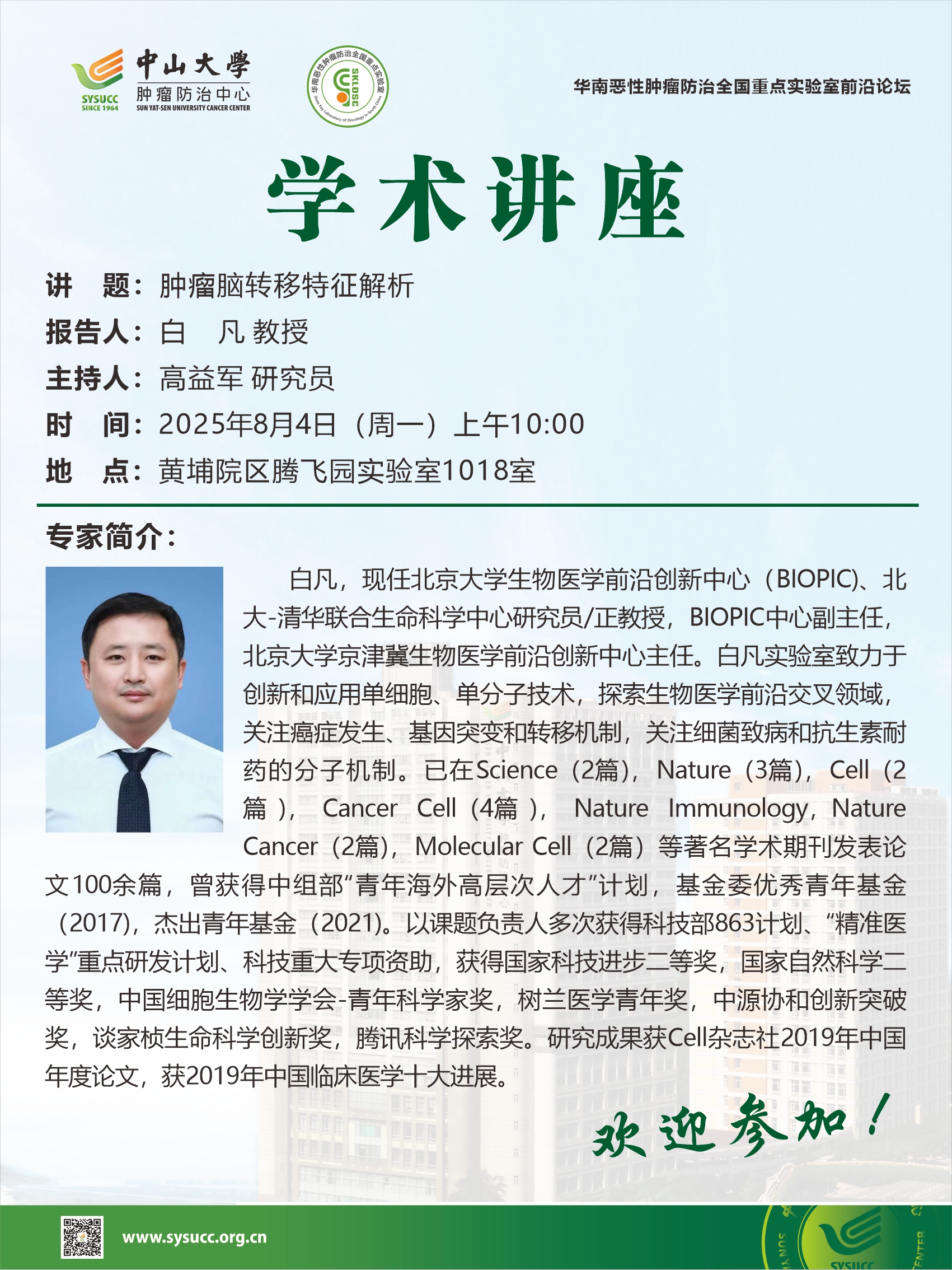 白凡教授-肿瘤脑转移特征解析-学术讲座
