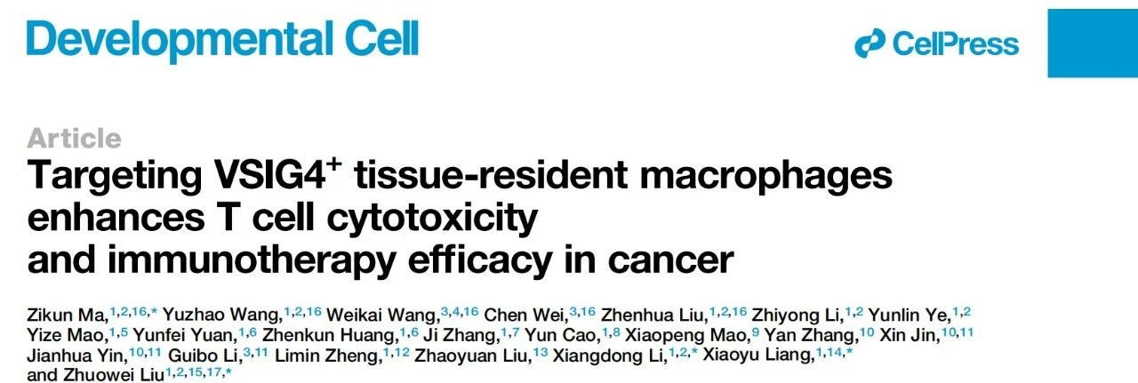 2025年5月7日,中山大学肿瘤防治中心泌尿外科刘卓炜团队在Developmental Cell上发表题为:“靶向VSIG4+组织驻留巨噬细胞增强T细胞毒性和免疫治疗疗效”的文章(点击阅读原文查看)。研究团队通过整合患者样本分析、多组学技术解析以及临床前模型验证的多维度研究策略,系统阐明TRMs在肿瘤微环境中的功能特征及其调控网络,将为开发更具针对性的联合治疗方案提供重要理论依据。