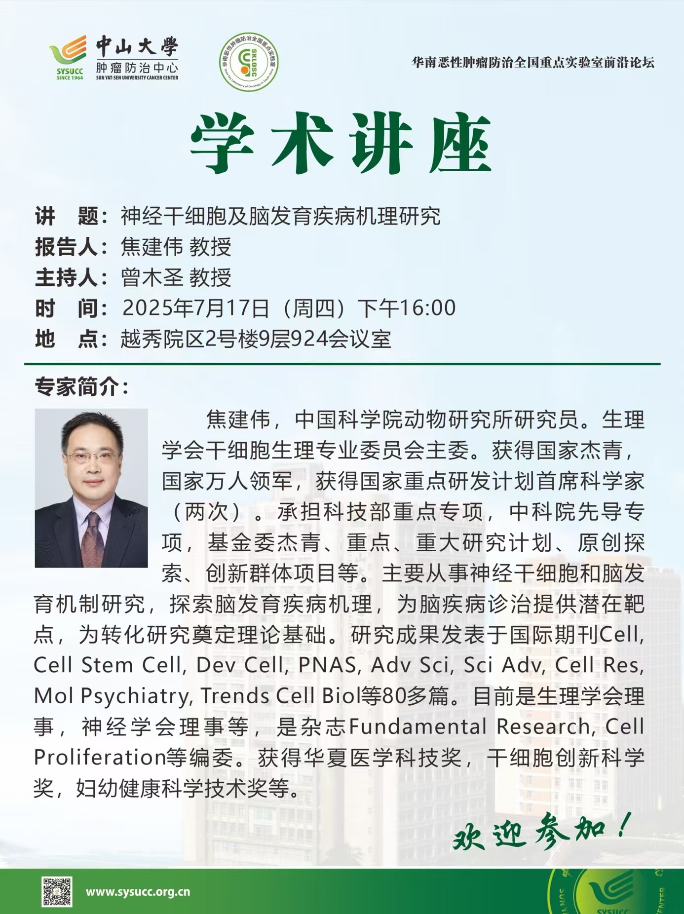 焦建伟教授-神经干细胞及脑发育疾病机理研究-学术讲座